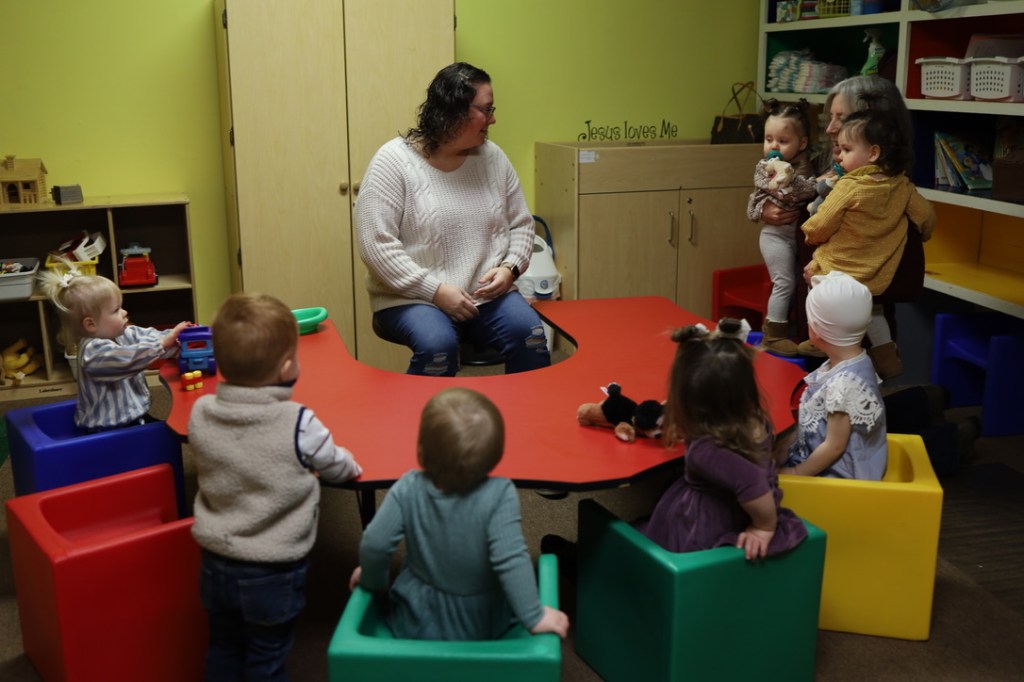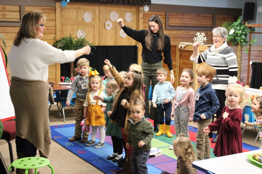 We also have quiet, private nurseries equipped with changing table and supplies, rocking chairs and lots of toys during both Bible Class and Worship assemblies. Children participate in activities including playful worship songs and playtime rolled into Bible story telling. The infant nursery is available for mothers and their infants until 1 year old. Toddler nursery is offered for toddlers to age two during class and worship.